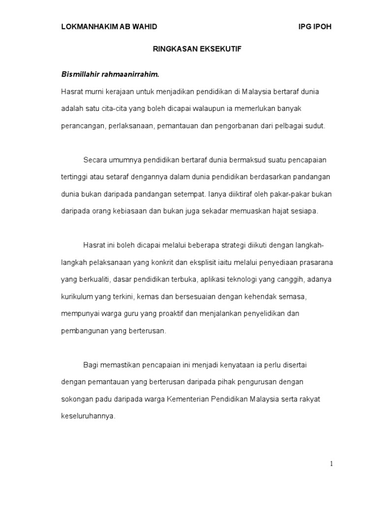 Akan tetapi Malaysia hanya menduduki tempat ke-52 daripada 76 negara. Justeru saban tahun Kementerian Pendidikan Malaysia KPM menerima peruntukan yang besar daripada kerajaan bagi merealisasikan aspirasi pendidikan ini demi menjamin masa depan anak bangsa. Justeru itu guru perlu memahami.