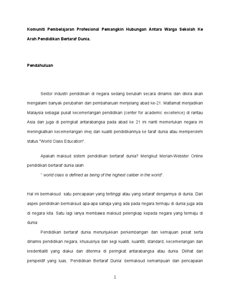 Komuniti Pembelajaran Profesional Membentuk Hubungan Antara Warga Sekolah Ke Arah Pendidikan Bertaraf Dunia Pdf